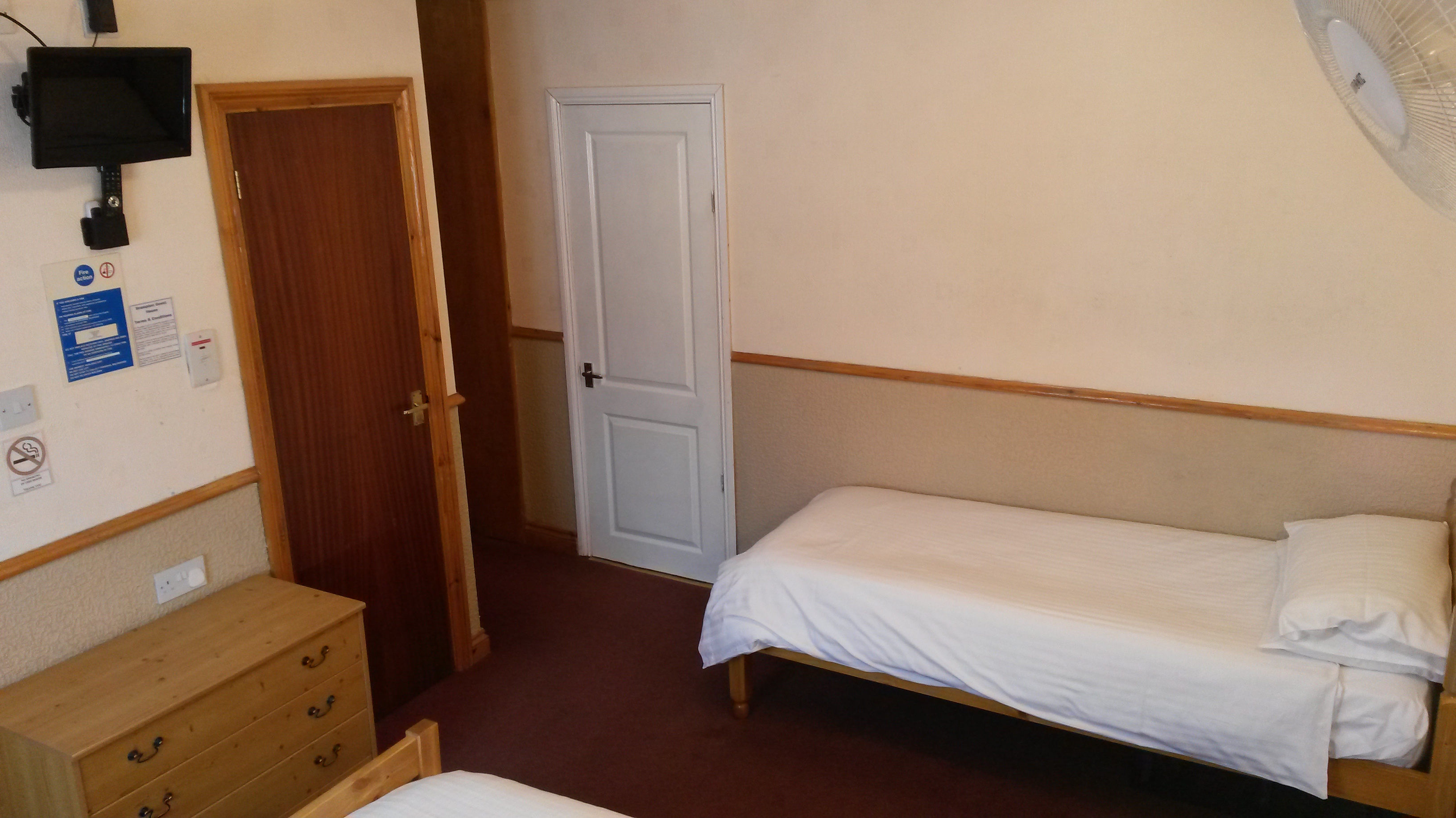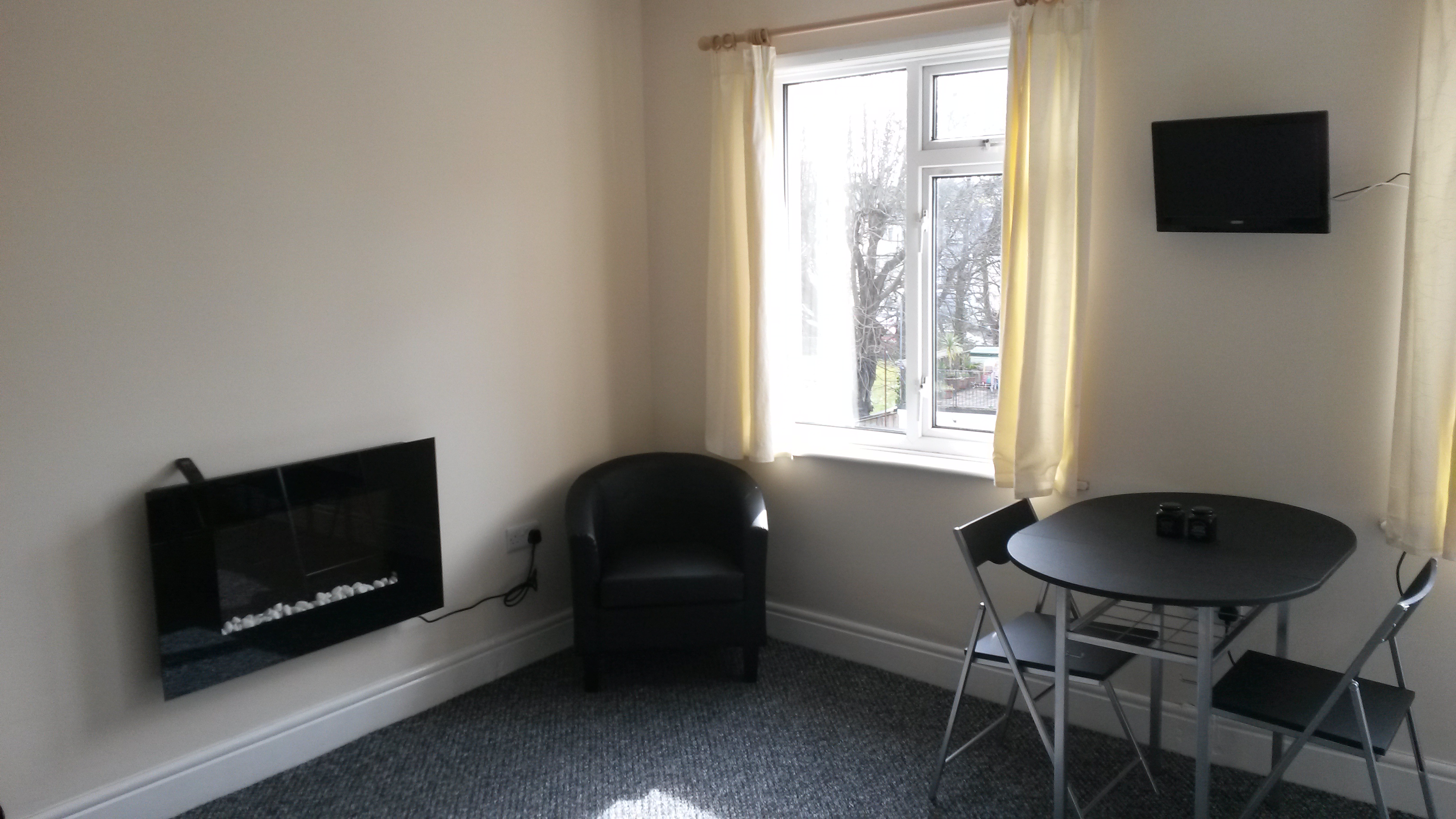 Our self catering flat is situated on the second floor and comprises open plan lounge /kitchenette and separate bedroom with en-suite shower and w.c. It is all electric and guests pay for this with a separate meter which takes £1 or £2 coins.